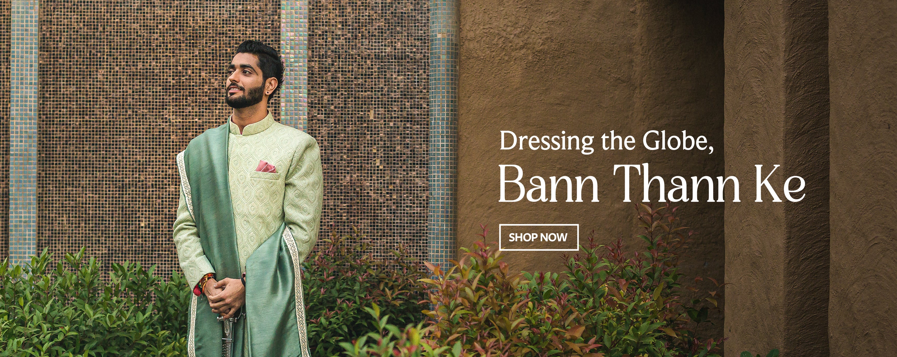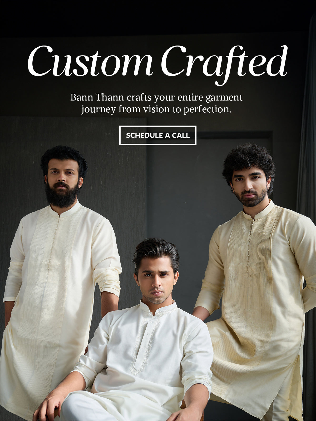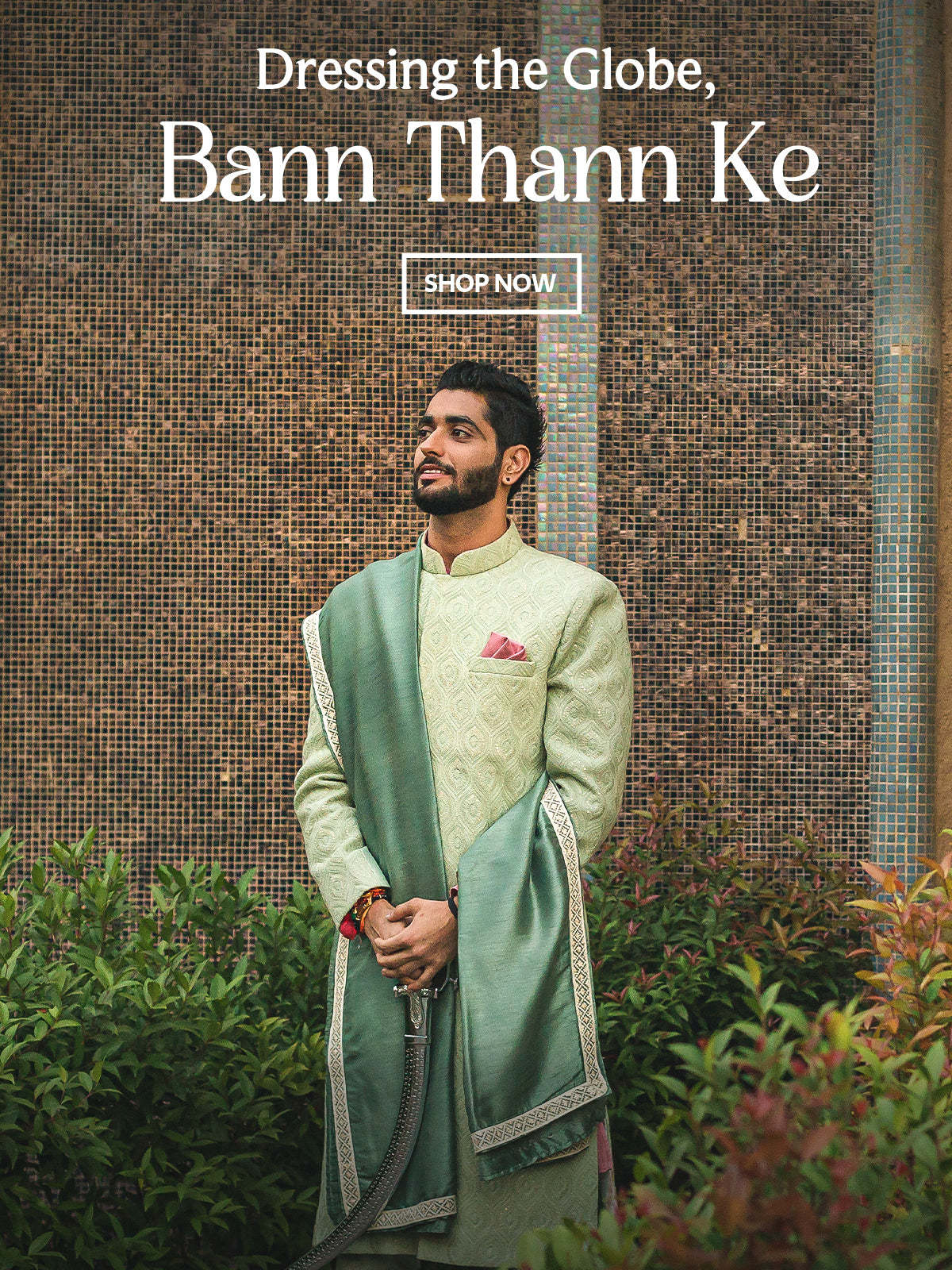 Our wish? That every guy who slips into a bann thann kurta and strolls out feels like time has slowed down, a gentle breeze tousling his hair. Picture it: he's the hero of his own story, with "bann thann chali dekho aaaye jaati re jaati re bann thann chali dekho aae jaati re" playing in the background.
